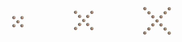 2. 亮点原创 东东用巧克力豆分别摆成了下面三个图案。像这样继续摆下去,摆第6个图案一共要用多少粒巧克力豆?(6分)