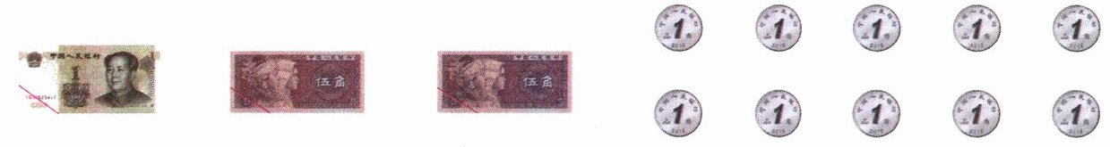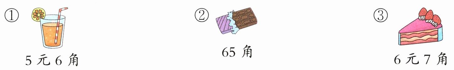 ① 5元6角 ② 65角 ③ 6元7角