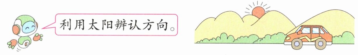 如果是清晨,小汽车正在向( )行驶,左转弯后,向( )行驶。