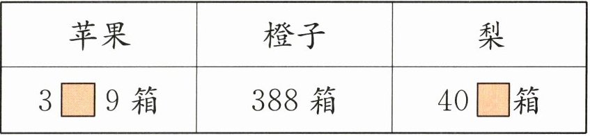 8. 果园里水果大丰收,苹果、橙子、梨的箱数(都是三位数)如下表。