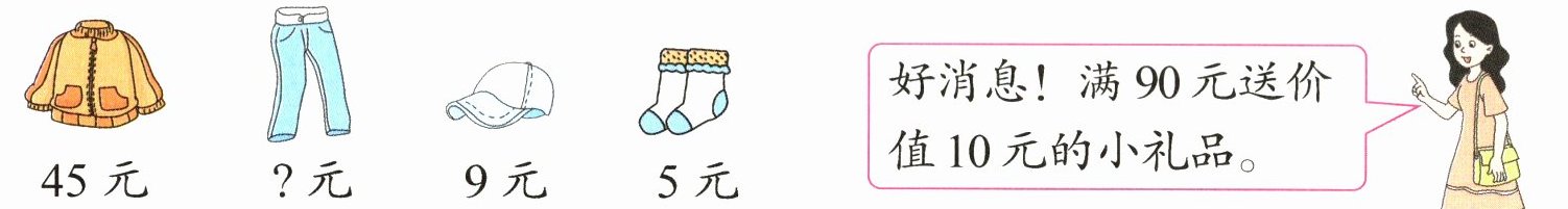 (2)妈妈买了 1 件外套后,如果想要得到小礼品,还可以再买些什么?买多少?(请写出一种合理的购买方案)(5 分)
