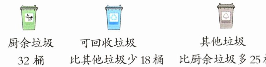 其他垃圾:32+25=57(桶) 可回收垃圾:57-18=39(桶)
