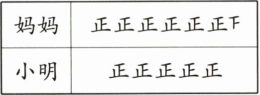 1. 新趋势 图表信息 在“垃圾分一分,环境美十分”活动中,妈妈和小明收集的废塑料瓶数量用画“正”字的方法记录如下表(一画表示 1 个,一个“正”字表示 5 个)。妈妈收集了多少个废塑料瓶?小明呢?(6 分)