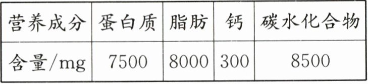 5. (2025·北京房山区期末)下面是一盒 250 毫升高钙牛奶营养成分情况统计表。