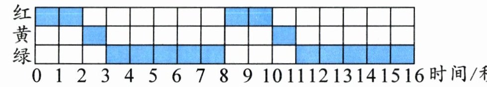11. 学校庆元旦文艺汇演,舞台灯光绚丽多彩,其中前排彩灯以固定的规律发出三种颜色的光,下图是前 16 秒光颜色变化的情况(涂色表示灯亮,空白表示灯暗)。