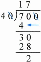 7. 新趋势 算理理解 在南通美术馆举办的“数见苏韵”活动中,“小粉炉”冰箱贴最受欢迎。这款冰箱贴的限时价为每个40元,700元最多可以买多少个?用下面的竖式可以解决这个问题。竖式中,箭头所指的“4”表示(