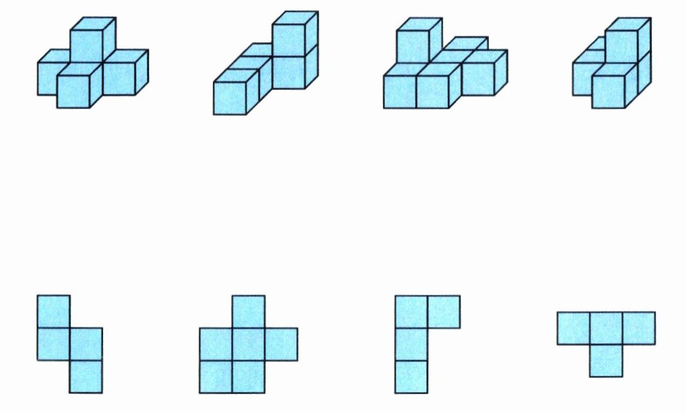 2. 下面的立体图形从上面看到的分别是什么图形? (4分)