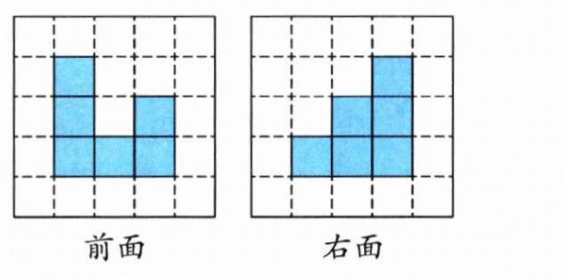 从前面看到的图形有( )种。在方格纸上画出从前面看到的所有可能的图形。(7分)