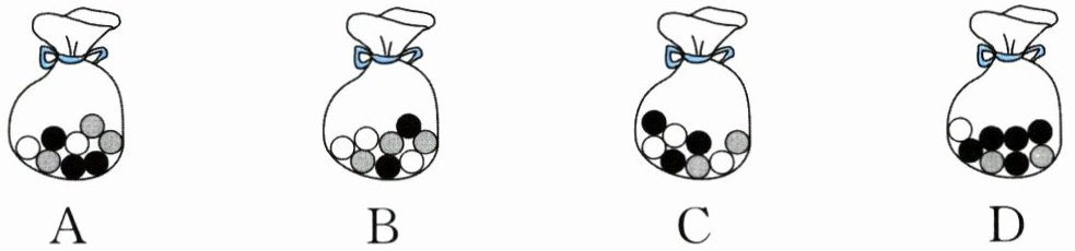 4. 小玲和小乐准备从下面的袋子中选一个做摸球游戏。游戏规则如下:每次任意摸一个球,摸后放回,每人摸20次,摸到白球小玲得1分,摸到黑球小乐得1分,摸到灰球两人都不得分。选(