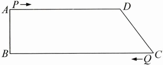5. 新素养 几何直观 如图,在直角梯形ABCD中,AD长20厘米,AB长8厘米,BC长26厘米,点P从点A开始以每秒1厘米的速度向右移动,点Q从点C开始以每秒3厘米的速度向左移动。(点Q到达点B时,两点同时停止移动)