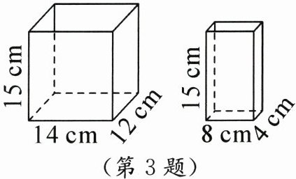 3. 如图,将2升水倒入上面的两个长方体容器中(容器壁的厚度忽略不计),使它们的水面高度相等,此时的水面高度是(