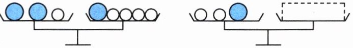 7. 根据左边的天平,在右边天平的虚线框里画出相应的白球(无蓝球),使之平衡。