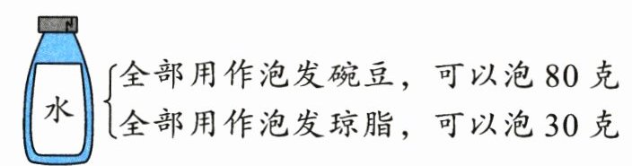 6. 豌豆黄是以豌豆为主要原料,再利用琼脂凝固成型的糕点。制作豌豆黄时,泡发 1 克豌豆比泡发 1 克的琼脂少用 5 毫升水。这瓶水有(
