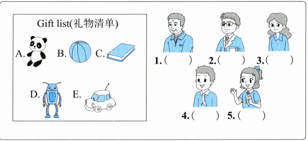五 听三遍录音,将物品与对应的人物进行匹配,并在括号内填序号。(10分)