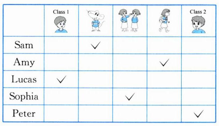 五 听两遍录音,找出人物介绍的朋友,并在相应的位置画“√”。(10分)