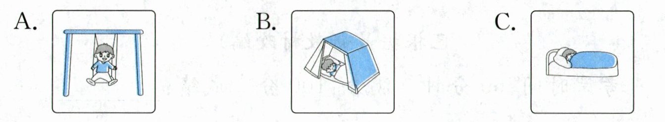 ( )4. “I sleep in the tent.” What does it mean(意思是)?