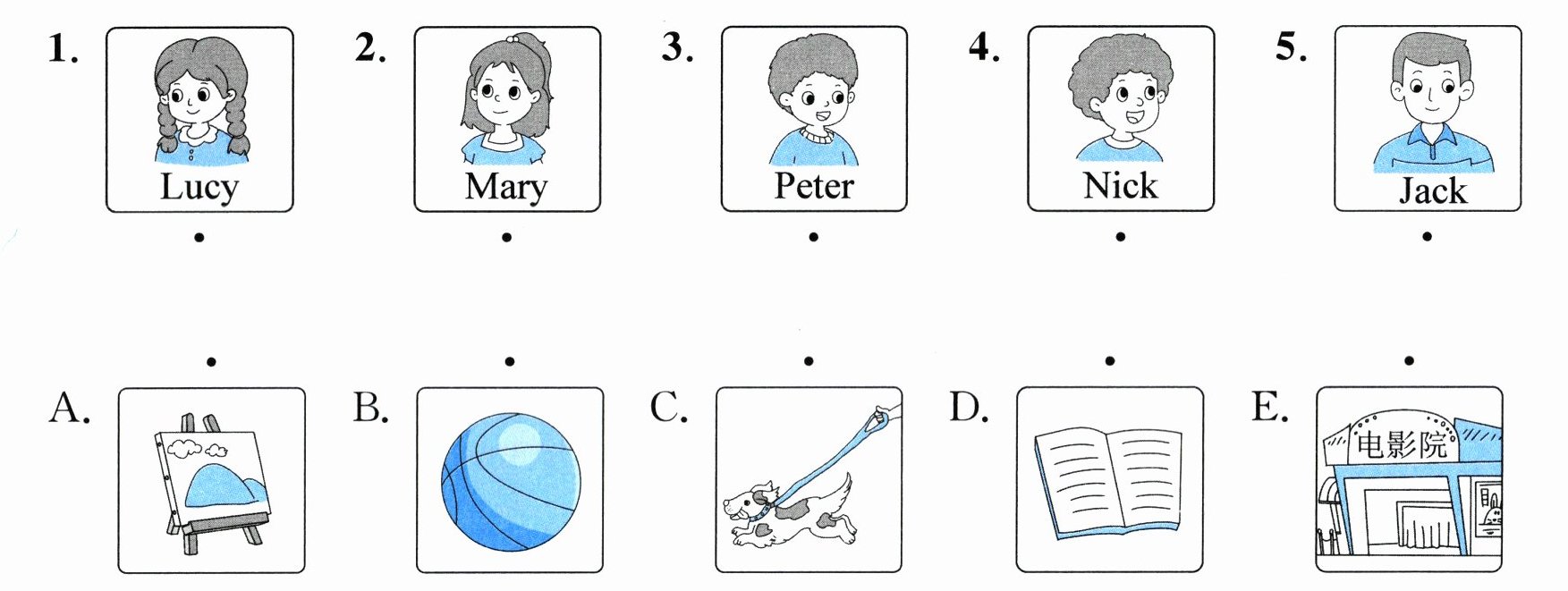 四 听两遍录音,根据所听对话,将人物与活动图片连线。(5 分)