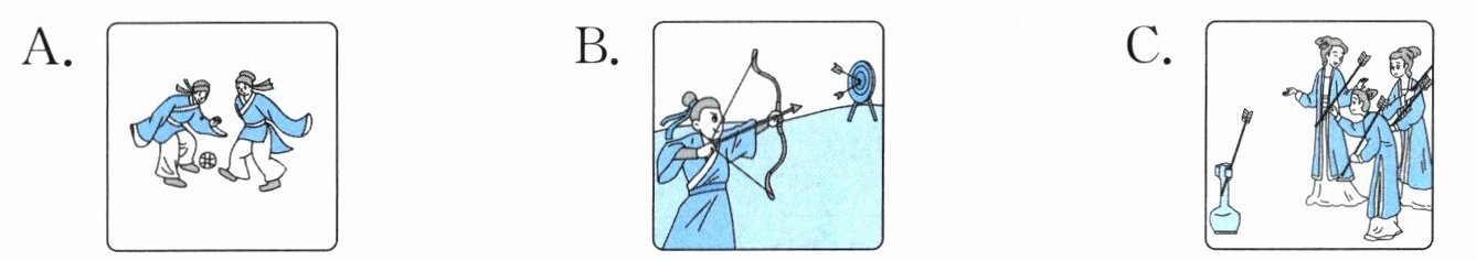 )6.亮点原创. Which shows a traditional Chinese sport that is recognized as the origin of modern football(被公认是现代足球的起源)?