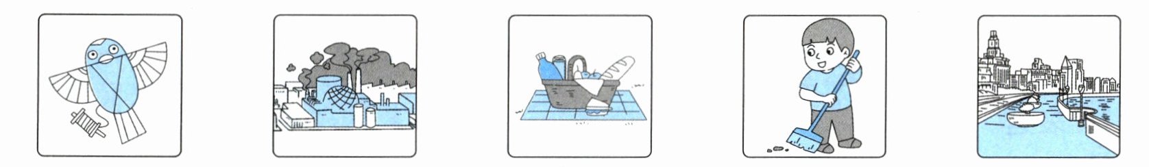一 听两遍录音,根据你所听到的 Jack 的周记内容,用阿拉伯数字给下列图片排序。(5 分)