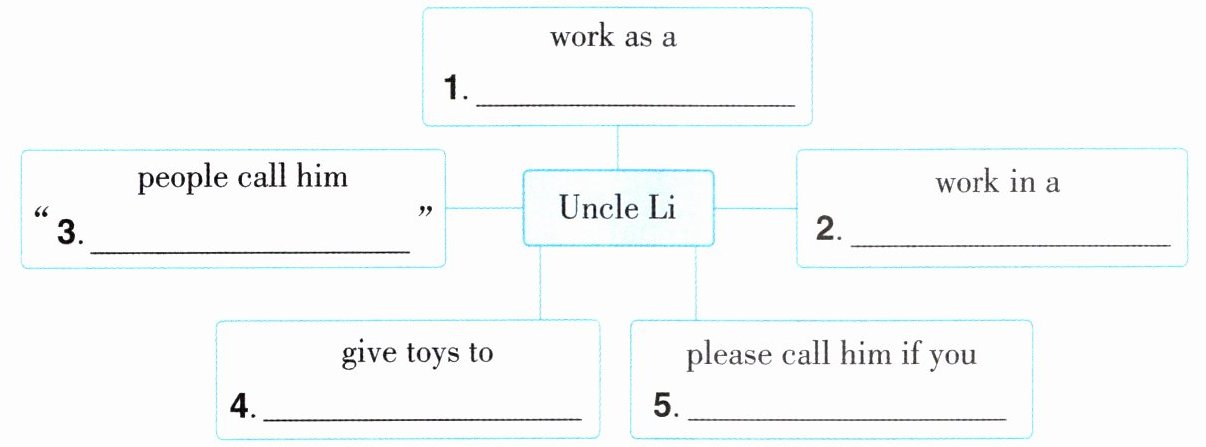 ”.In the hospital, children always lose toys, so Uncle Li puts the toys on his back(背). Then the children can find them easily. And he buys more toys. He gives them to the