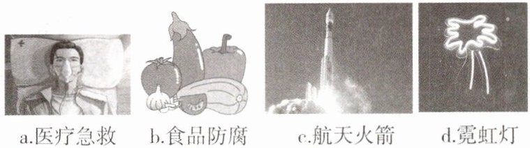 (填字母)。a.医疗急救 b.食品防腐 c.航天火箭 d.霓虹灯