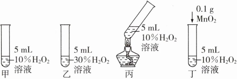 D.对比实验甲、丙和丁,探究$MnO_{2}和温度对H_{2}O_{2}$分解速率影响的程度
