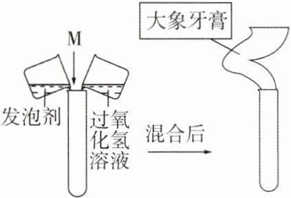 2. 教材变式题 在细长的容器中加入过氧化氢溶液和发泡剂(用于产生泡沫),仅看到少量泡沫,然后向其中加入少量M,立即看到大量泡沫迅速从容器口喷出,源源不断,可形象地称为“大象牙膏”。
