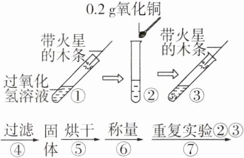 放出,带火星的木条复燃;步骤⑥的结果是氧化铜的质量仍为0.2g