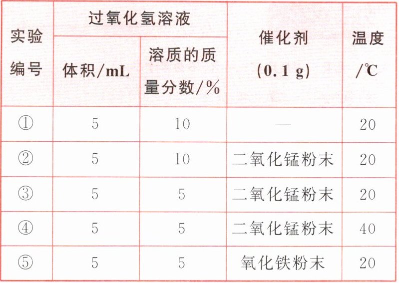 |实验编号|过氧化氢溶液| |催化剂(0.1g)|温度/℃|