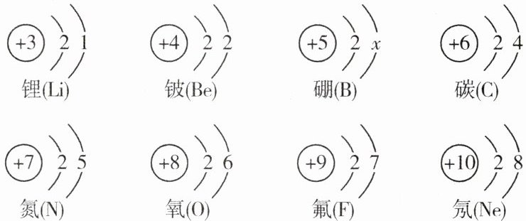 周期。(2)硼原子结构示意图中的x=