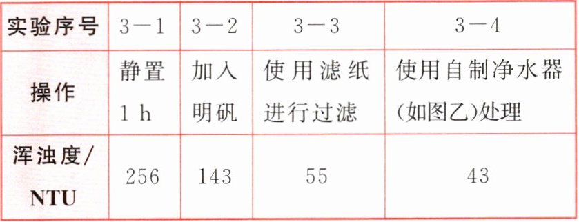 (5)初始水样的浑浊度相同,实验 3-4 比 3-3 中净化后的水样浑浊度低