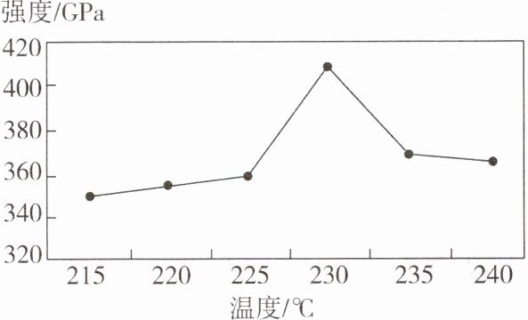 (4)在215℃~240℃的温度范围内,随着热处理温度升高,碳纤维强度先增大后减小(合理即可)