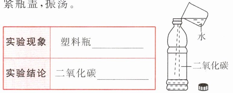 如图所示,向一个收集满二氧化碳气体的质地较软的塑料瓶中加入约三分之一的水,立即旋紧瓶盖,振荡。