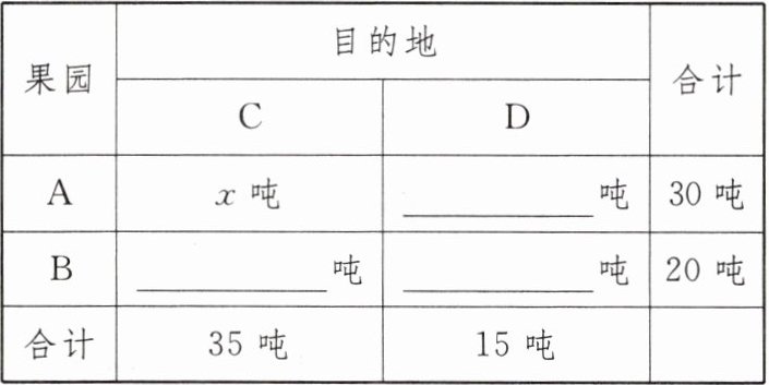 $B$果园运往$C$城市:$(35 - x)$吨;