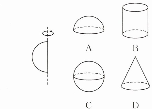 9. (陕西中考)如图,将半圆绕直径所在的虚线旋转一周,得到的立体图形是 (