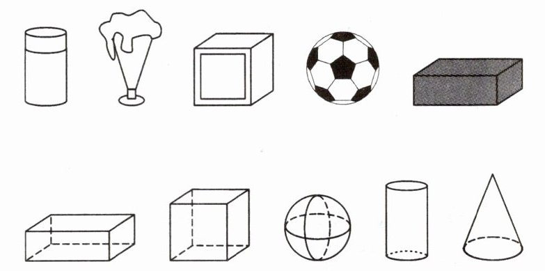 5. 【几何直观】如图,把下列物体和与其相似的图形连接起来.