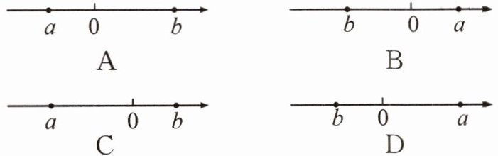 14. 【几何直观】已知 $ a,b $ 是不为 $ 0 $ 的有理数,且 $ |a|=-a,|b|=b,|a|>|b| $,那么用数轴上的点来表示 $ a,b $ 时,正确的是(