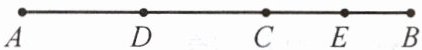 如图,$ C $ 是线段 $ AB $ 上的点,$ D $ 是线段 $ AC $ 的中点,$ E $ 是线段 $ BC $ 的中点。若 $ DE = 10 $,则 $ AB $ 的长为