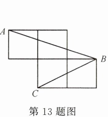 13. 如图,每个小正方形的边长为 1,A,B,C 是小正方形的顶点,则$\angle ABC$的度数为