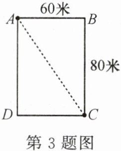 3. 如图,这是某长方形大理石广场示意图,如果小琴要从 A 角走到 C 角,那么她至少要走(