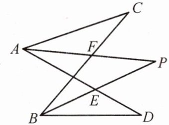 14. 如图,$\angle CAD$与$\angle CBD$的平分线交于点$P$。