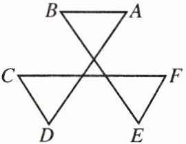 15. 如图所示,$\angle A+\angle B+\angle C+\angle D+\angle E+\angle F$的度数为