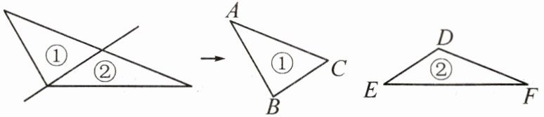 11. 如图,三角形纸片沿过一个顶点的直线剪开后得到①②两个三角形纸片,则一定正确的是(