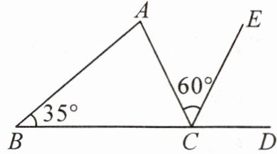 10. (乐山中考)如图,$CE$是$\triangle ABC$的外角$\angle ACD$的平分线。若$\angle B = 35^{\circ}$,$\angle ACE = 60^{\circ}$,则$\angle A =$(