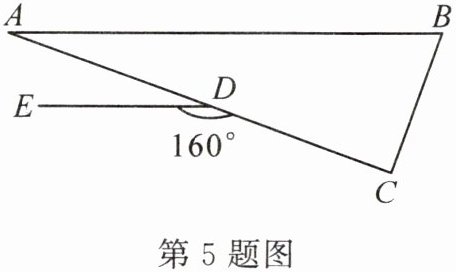 5. 如图,在△ABC中,∠C=90°,点D在AC上,DE//AB.若∠CDE=160°,则∠B的度数为(