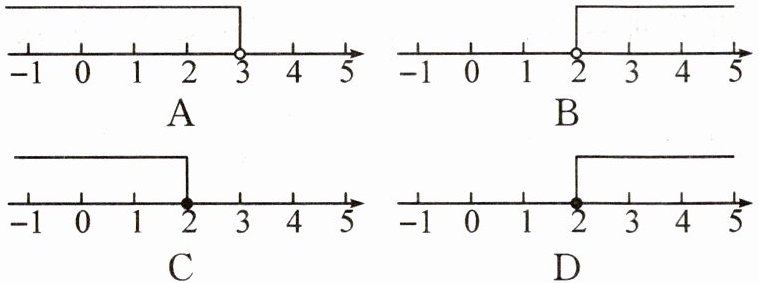 4. (广西中考)$x \leq 2$ 在数轴上表示正确的是(