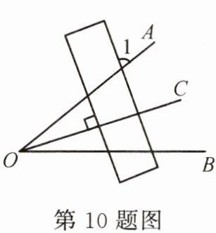 10. 如图,∠AOB=40°,OC平分∠AOB,直尺与OC垂直,则∠1=(