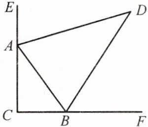 解:∠D=45°. 证明:因为BD平分∠ABF,AD平分∠BAE,所以$∠DBA=\frac{1}{2}∠ABF,∠DAB=\frac{1}{2}∠BAE. $因为∠ABF=180°-∠CBA,∠BAE=180°-∠CAB, 所以$∠D=180°-∠DBA-∠DAB=180°-\frac{1}{2}(∠ABF+∠BAE)=\frac{1}{2}(∠CBA+∠CAB).$因为∠CBA+∠CAB=180°-∠C,所以$∠D=\frac{1}{2}(180°-∠C)=90°-\frac{1}{2}∠C,$所以∠D=90°-45°=45°.