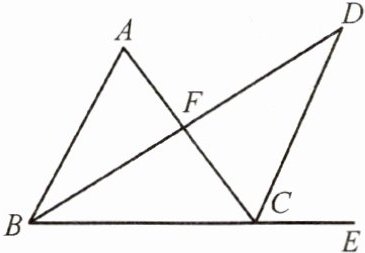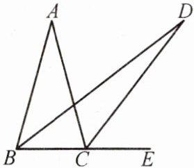 证明:因为BD平分∠ABC,CD平分∠ACE,所以$∠DCE=\frac{1}{2}∠ACE,∠CBD=\frac{1}{2}∠ABC.$因为∠ACE=∠A+∠ABC,∠DCE=∠D+∠CBD,所以$∠D+∠CBD=\frac{1}{2}(∠A+∠ABC)=\frac{1}{2}∠A+\frac{1}{2}∠ABC. $所以$∠D=\frac{1}{2}∠A.$