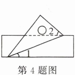 4. (菏泽中考)一把直尺和一个含$30^{\circ}$角的直角三角板按如图方式放置.若$∠1=20^{\circ}$,则$∠2=$ (